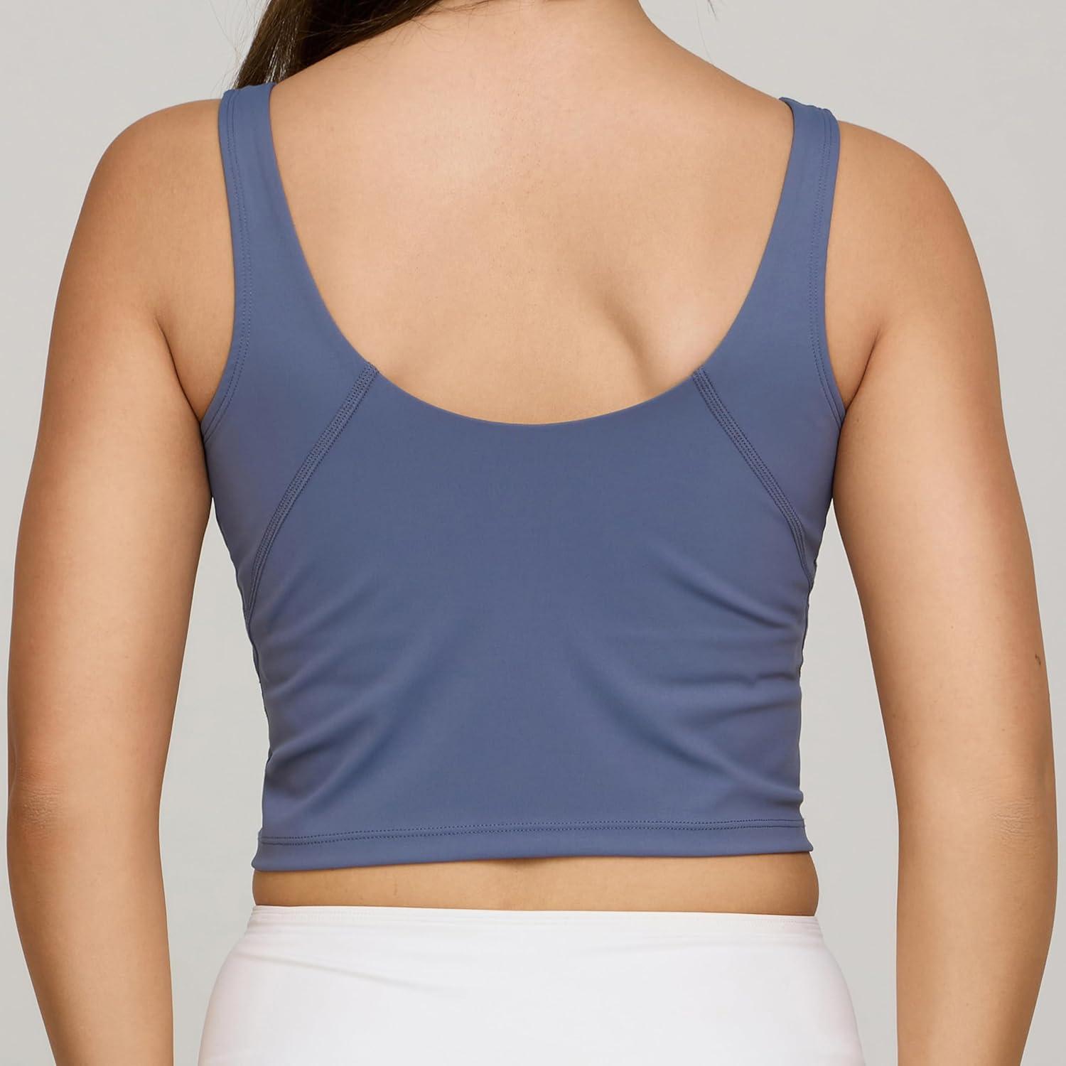 PURE CHAMP 2pk Sports Bras for Women Medium Support Crop Tops Tank Top for Women Camisole Cami Workout Tops Removable Padding(Black & Ink Blue)