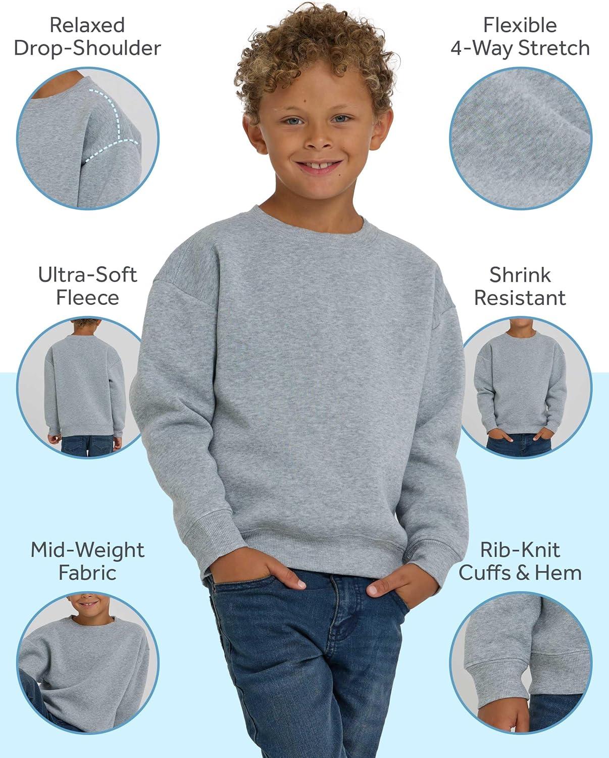 This 3-pack Pullover Sweater Of Boys' Fleece Crewneck Sweatshirts Will Ensure That Your Child's Wardrobe Is Ready For Anything. These Pullovers Kids Sweater For Boys Are Made Of 100% Polyester And Are Ideal For Comfort, Durability, And Daily Use. The Incredibly Soft Fleece Fabric With 4-way Stretch Makes Them Ideal For School, Sports, Play, And Lounging At Home. These Fleece Sweatshirts Have A Casual, Drop-shoulder Shape With Rib-knit Cuffs And Hems, Combining Traditional Design With All-day Comfort. parents Will Appreciate The Long-lasting Quality Of Boys Long Sleeve Shirt , As The Fabric Is Anti-pilling And Shrink-resistant, Remaining Smooth And True To Size Wash After Wash. These Boys Sweatshirts Are A Must-have Essential For Any Boy's Wardrobe, Available In A Variety Of Sizes (xs-2xl, 4/5-18/20) And Colors Such As Black, Navy, Heather Grey, Olive, Burgundy, And More. Whether Layered Beneath A Jacket In Cooler Weather Or Worn On Their Own, They're The Ideal Combination Of Comfort, Style, And Affordability. everyday Comfort: these Boys' Fleece Crewnecks Are Designed To Keep Children Comfy From Dawn To Night. The Fabric Is Comfortable To The Touch, And The Loose Fit Allows For Effortless Movement Whether In The Classroom, On The Playground, Or At Home. designed For Regular Wear: long-lasting Apparel Is Essential For Busy Days. The Fleece Is Intended To Resist Pilling, Preserve Its Form, And Retain Its Size After Each Wash. With No Shrinking And Durable Stitching, Each Sweatshirt May Be Worn Several Times Without Losing Its Appearance. simple And Versatile Style: the Drop-shoulder Design Lends These Pullovers A Relaxed, Casual Look, While Rib-knit Cuffs And Hems Maintain The Fit Immaculate. They Go Nicely With Jeans, Joggers, Or School Pants, Making Them A Versatile Choice For Any Ensemble. options That Fit: these Sweatshirts Are Available In Sizes Xs Through 2xl (4/5-18/20), Making Them Suitable For Both Young Children And Teenagers. The Variety Of Colors—black, Navy, Olive, Heather Grey, Burgundy, And More—provides Several Options For Layering And Complementing With The Rest Of Their Clothing. key Features At A Glance: pack Contains Three Fleece Crewneck Sweaters. made Of 100% Polyester, Mid-weight Fabric super Soft And Four-way Stretch For Comfortable Mobility. anti-pilling And Shrink-resistant Material. relaxed Fit With Dropped Shoulders rib-knit Cuffs And Hem Provide A Sturdy Finish. a Variety Of Sizes And Classic Hues