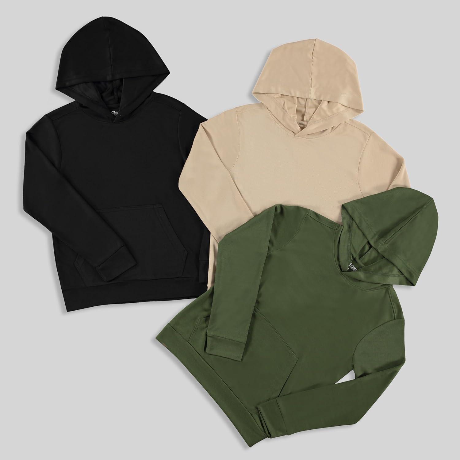 PURE CHAMP 3 Pack Mesh Boys Hoodies Active Athletic Quick Dry Pullover Hoodies For Boys Essentials Hoodie Lightweight 4-20(Set 3)