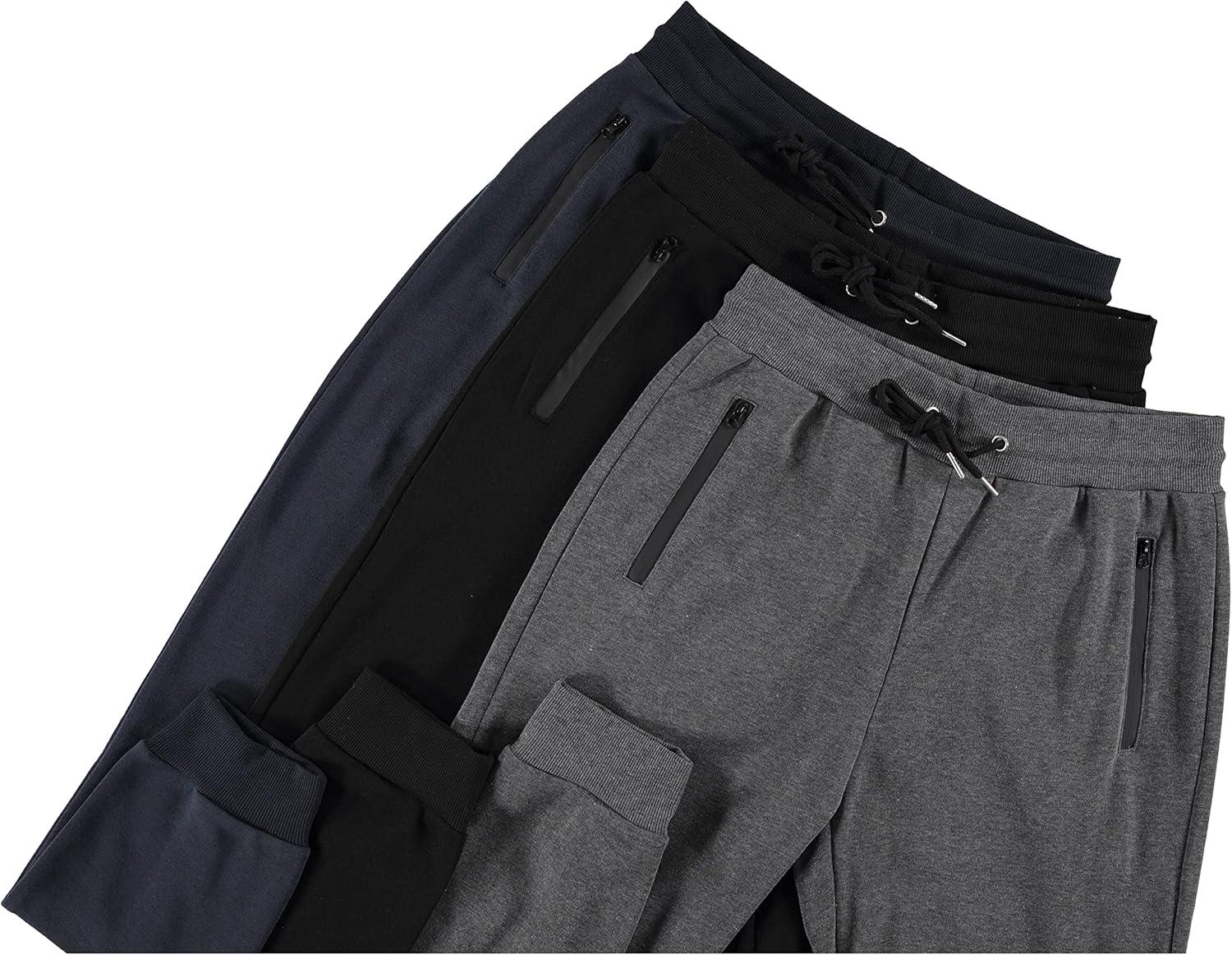 PURE CHAMP Mens 3 Pack Fleece Active Athletic Workout Jogger Sweatpants for Men with Zipper Pocket and Drawstring Size S-3XL(Set 2)
